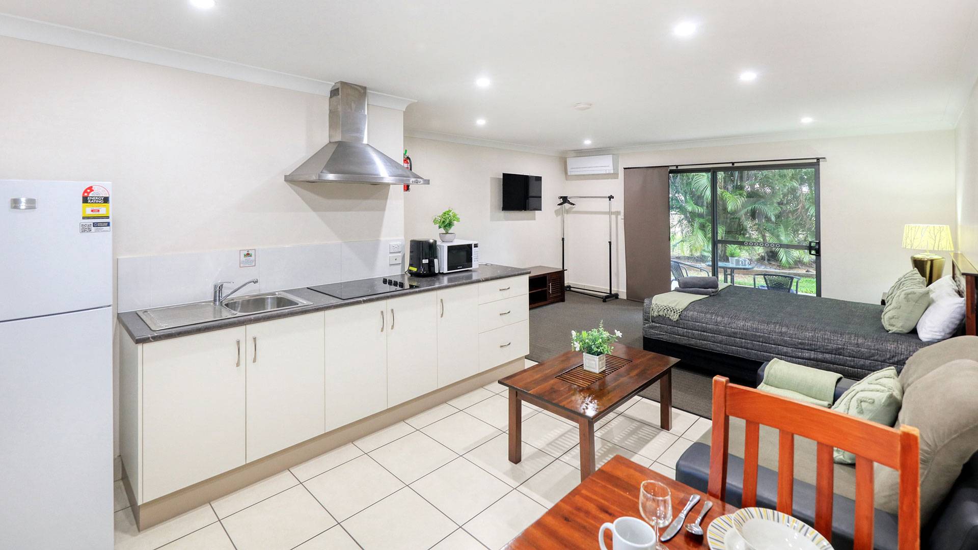 Our Executive Studios and Self Contained Two Bedroom Apartments are suitable for both long and short term stays, fully furnished with a full sized kitchen.